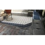 植木を処分し、通風機能を備えた見た目もオシャレな木調フェンス交換工事させていただきました。 タイル部分は傷みのひどいところを部分的に補修させていただきました。
