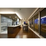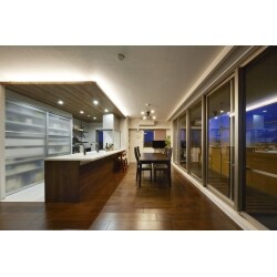 照明計画のお打合せは、特に時間をかけてイメージやこだわりを踏まえた仕上がりを目指しました。 キッチンの下がり天井とリビング面の間接照明がアクセントに、モダンな空間をご提案致しました。