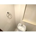 トイレは、広くて深い手洗鉢と、シンプル機能のシャワートイレ一体型スタンダードモデルのアメージュZAを採用しました。壁は4面パネルにして、気になる汚れやにおいもさっと一拭きできれいになります。光沢もあり、明るく清潔なトイレをキープできます。