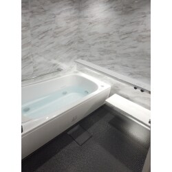 マンションにお住まいのA様。 水廻り設備をきれいにしたいとリフォームをご検討されていました。 TOTO シンラWKシリーズRタイプ1418にお取替え。 壁パネルはプレミアムグレードのアジャックスホワイトという天然素材を再現した石目調のデザインです。 アジャックスホワイトはシンラ(戸建て向け)人気壁柄ランキングで1位に選ばれた人気の柄です。 浴槽はホワイト、床はライツブラックをお選び頂きました。