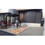 アプローチは乱形石でおしゃれになるようなご提案で、イメージパースを作成致しました。アプローチの形や配置で悩んでいらっしゃったので、合計7パターンのパースを作成し、ご決定していただきました。玄関アプローチ階段には安全面を考慮し、手摺を取り付けるご提案もいたしました。外壁がブラック系ですので、3色あるうちのブラックで統一いたしました。