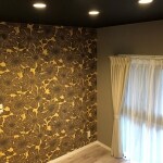 大胆な柄が、アクセントになっています。 各メーカーから出ている壁紙の中から、お気に入りの柄が見つかるよう、お手伝いさせていただきます。
