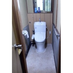 トイレを新調しました。 便器の凹凸もなくなり、スマートな印象に。 劣化し、汚れていた床もクッションフロアに張替えました。 以前に比べ、お手入れも簡単です。