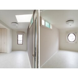 リビングとして使っていたお部屋は、小窓のある間仕切りで2部屋にしました。トップライトを利用し、間仕切り上部の小窓から差し込む光で、明るく落ち着いた雰囲気のお部屋になりました。