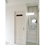 以前トイレだった場所を洗面脱衣室にしました。洗濯機置き場だった場所には、洗面コーナーを新設し、効率的な家事動線になりました。洗面・浴室への入口は下がり壁になっているので圧迫感がなく、とても素敵な空間になりました。