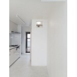 壁・フローリング・建具などをホワイトベースにすることで明るくすっきりスタイリッシュに。建具は、縦長窓のステンドグラス柄のデザインでモダンな雰囲気をプラス。