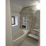 以前浴室の隣のトイレだった場所を洗面脱衣室に間取り変更することで、水回りが快適になりました。浴室は、お掃除ラクラク機能がいっぱいのひろがるWYシリーズをお選びいただきました。鮮やかな発色で、彩り豊かなハイビジョン画質の浴室テレビで、ゆったりと快適なバスタイムを。