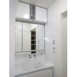 一面鏡の既存洗面台から、収納豊富な三面鏡の洗面台へ交換