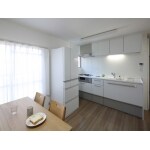 お嬢様の一人暮らし用の部屋としての改装。しばらく空家の状態だったため、傷みが激しく、下地含めスケルトンの状態にしてからの改装となりました。他の住戸も同間取りの為他のお客様の改装の経験を踏まえた上でご提案しました。タイル等も貼らず白ベースのインテリアに。外部と接触する外壁側は極力二重壁とし、壁の断熱を施し、少しでも室内の温度が快適になるように考慮しました。