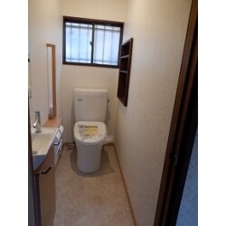 現在和式と男性用縦型トイレ2つが設置されているものを 洋式シャワートイレ1つとしたい。 換気扇、カウンター、手摺り新設、人感センサー照明、下窓塞ぎ、2連紙巻ロール、コンセント増設。