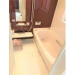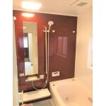 キッチンと併せて、アクセントパネルをボルドーに。 タイルの冷たさから解放され、また掃除がしやすいユニットバスになったことにより、毎日のバスタイムが心地の良い時間になりました。