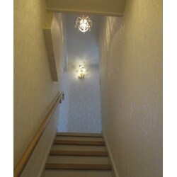 ペンダントライトの光の効果で、明るくあたたかい印象の階段になりました。
