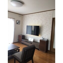 エコカラットの壁にし、テレビは壁かけにすることでスッキリ・お洒落になりました。