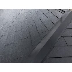 補修箇所には専用液流し込み硬化タイプで補修。最高ランクの耐候性を持つ塗料を使用し、タスペーサー(屋根材のスレートの間に空間を持たせる部品)を取り付け水の流れを確保し施工してあります。