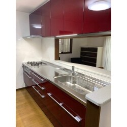 L社の「リシェルSI」を設置致しました。 扉カラーは「クレストレッド」になっています。 レンジフードは以前よりお手入れが簡単になり、油汚れがつきにくい仕様になっています。