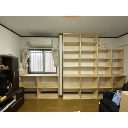 壁面全体を有効活用し、なおかつ地震の時も棚は固定されているので安心です。