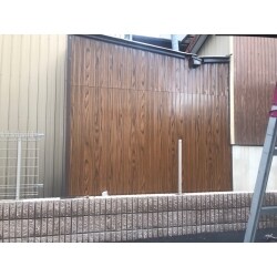 なるべく既設の板金と色、柄を合わせて勝手口を壁にして欲しいとのご依頼。 前から台風の時などガタガタ音がして気になっていたので改善したい。