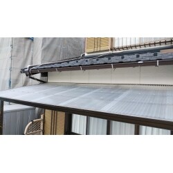定期点検でお邪魔させて頂いた時に、波板の劣化の事をご相談頂き割れてしまったり飛んでしまう前に、ポリカ製の物に交換することをご提案させて頂きました。 快適性と安全性を長く保つ事を念頭において施工をさせて頂きました。