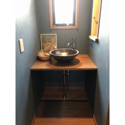2階の廊下にある洗面化粧台を、カウンターの上に洗面ボウルをのせた造作洗面台にしたい。
