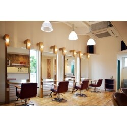 立地条件が最高の美容室でした。 出来る限り外側からも広く清潔に見えるように、光の反射・光の上下左右からの取り込み方を考えました。 今後も幅広い年代層のお客様に愛されるサロンとなるよう、シャンプー台やチェアも最新の設備に交換し、木枠の鏡・収納など、ナチュラルでカフェのような仕上がりにもこだわっています。