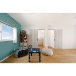2階の2部屋をつなげて大きなスペースに。将来的に仕切ることを想定し、建具等を配置しました。
