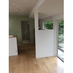 ダイニングとリビングを1つの部屋に改造、キッチンも対面式に変更し、広々としたLDK空間と生まれ変わりました。
