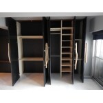 左側の間仕切りを解体し、間口と奥行を広げました。収納内部はダボレールを使用し、用途に応じて仕切りを変えられます。 仕切り解体部は広いスペースも取りたいとの御要望により間取り変更のご提案を致しました。 建材も完全造作品によりオレフィンシートや扉の材質等一つ一つお客様と御打ち合わせし、制作致しました。