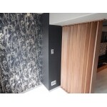 1、既存収納の奥行を少々深くし、間口を大きくするご提案をしました。建材についてはお客様のこだわりを考慮し、収納扉等含めメーカー品等を使用せず、全て造作品で対応しました。その結果、お客様完全オリジナルの壁面収納として仕上がりました。 2、通常の間仕切り等の造作に加え、採光が絡むポイントの一つとしてオリジナルの木製可動式ルーバーをご提案しました。意匠面に加え、必要な時は仕切り、日中は採光を取り入れることが出来る仕様でプランニング致しました。