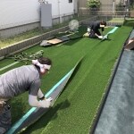 元々芝生張りのお庭で、最初は天然芝も綺麗でした。 しかし芝生と雑草が混ざって手入れが大変になり、お庭ではあまり遊べていませんでした。 そうした中、弊社HPで人工芝の施工例を見たのがきっかけとなり、「同じようにワンちゃんが遊べるお庭が欲しい」との思いから人工芝への張り替えを決められました。