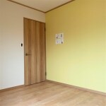 こちらは長女様のお部屋。2つに仕切った真ん中の壁には防音材が入っているためプライバシーも確保されます。黄色い壁がとても可愛らしいお部屋です。
