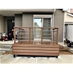 新築物件の外構をご依頼いただきました。 2階ベランダ物干し場にテラス屋根を新設したい。 リビングから庭への出入りに高低差があり、使い勝手の良いウッドデッキを希望。