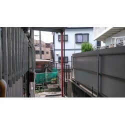 2階建て8戸アパートで、2階の外廊下を支える鉄柱のうち一番奥の1本が錆びて腐食し折れ曲がってしまっている。新しい鉄柱で補強又は差し替えが必要。