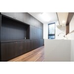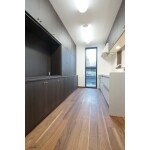 扉を新しくし、床にはLDと同じウォールナットのフローリングを張りました。LDと同じくキッチンにも床暖房を設置してあるので快適です。