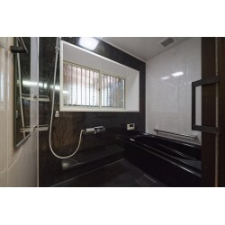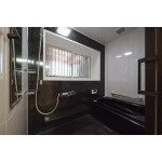 システムバスに入れ替えました。 黒が基調のスタイリッシュな空間になりました。