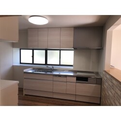 施工後の写真です。 キッチンは既存のキッチンとできるだけ大きさの同じものを選定いたしました。