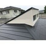 施工後のドーマ部分です。 外壁も屋根と同じようにカバー工法(重ね張り)をしています。 外壁部分にははる一番という外壁材を使っています。