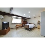 お手入れのしやすい洋室に変更し、床はクッションフロアーで仕上げました。 このお部屋は玄関につながるスロープやお風呂、トイレへのアクセスが良く、快適に生活していただけるようになっています。