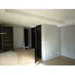 外壁面全周と天井に断熱材を入れ 全窓にインナーサッシを取り付け夏涼しく冬暖かい空間になっています。 グレーの壁紙とブラックとホワイトの建具でシックな空間に なりました。 2階部を1K×3戸の賃貸住居へ、3階部を居住空間にリノベーションしました。