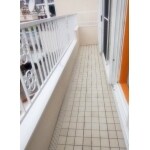 ベランダの床と手すりは劣化が進んでいました。 手摺り部分の錆を綺麗に落とし白で塗装いたしました。 床はブロック調のタイル(ストーンホワイト)を採用し、明るい空間に仕上がりました。