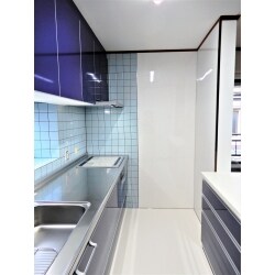 既存のタイルを活かしI型にするプランをご提案させていただきました。 一部のタイルを移設して2面をキッチンパネルにして掃除をしやすくしました。 クリナップのラクエラをご紹介してショールームへご一緒させていただき決めさせていただきました。