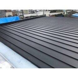 軽くて上部な軽量金属屋根を丁寧に上張り施工