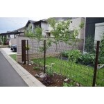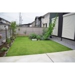 道路との境界には植栽スペースを設け、“緑に囲まれながら癒される空間”を演出するため、緑のカーテンを作ることが出来るフェンスを提案しました。 家庭菜園スペースは90度回転させ南向きにすることで、より日当たりを良くすることが出来ました。 今回工事したのは寒い時期で芝張りには適していなかった為、芝生の植込みは春まで延ばし、その間は整地した上で雑草が生えないように防草シートを敷き込んで対策。 そして春には職人の手によって綺麗にな芝生に仕上がりました。