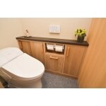 床を廊下からフラットにし、転倒の心配がなくなりました。間仕切りドアを吊りタイプの引戸にし、ラクに出入りできます。便器はローシルエットな形に変え、空間が広くなっています。