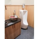 高齢の奥様がホースで水をかけながら、床や小便器内のお掃除をされていましたが、年々辛くなっていた。