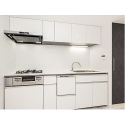 住宅設備は各メーカーが誇る最高級グレードの商品を導入しました。具体的にはキッチン「TOTO ザ・クラッソ」 ユニットバス「TOTO シンラ」 洗面「LIXIL ルミシス」 WC「Panasonic アラウーノ」を導入。各所高級感溢れる「白・黒」で統一したラグジュアリーな空間になりました。床材は「DAIKEN ハピアフロア(石目柄・鏡面仕上)」を使っています。大理石のようなキラキラ光る床はより一層空間を高級なイメージに仕上げました。 建具は交換ではなくダイノックシートをあえた貼った理由はお客様お気に入りの「黒色」をダイノックシートで見つけた為です。