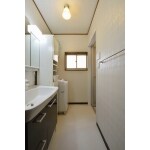 洗面化粧台を取り替えました。 3面鏡付きで、使い勝手が良いです。 天井・壁のクロス、床のクッションフロアーは貼り替えました。