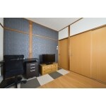 畳をフローリングに変更し、壁はクロス仕上げにして洋室としてお使いいただけるようにしました。 真壁を残し、和柄のクロスを1面に貼ったのがポイントです。