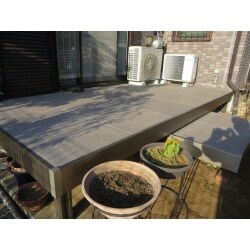 木製のウッドデッキが古くなり壊れて、木製以外のデッキで長持ちする材料で新しく作りたいとのご要望でした。