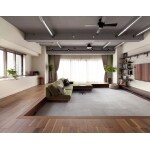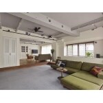 自宅兼事務所として使用している3つの部屋が続き間でつながっており、扉を開けていてもなんとなく暗く閉塞感があり部屋をうまく活用できていない状態でした。応接間として利用しなければならないリビングをワークスペースとプライベートなリビングの2つの要素に区分け、壁と天井を取払い広くて開放的な空間に。空間に間仕切り壁をあえて設けず、視線だけではなく、家具で仕切り可変しながらライフスタイルの変化と共に変える楽しみを持たせました。床材等ペットに配慮しつつ、好みのインテリアをも楽しめる様に資材選定した共存住宅です。