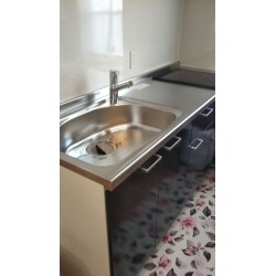 二世帯住宅のお客様でのミニキッチン交換です。 シンクキャビにカビが発生しており、また排水臭がするとのことでの交換ご要望でした。
